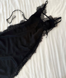 Um ícone de sensualidade noturna: renda translúcida que cobre e revela na medida certa. O design de gola alta cria um contraste sofisticado com a transparência total do corpo, transformando cada movimento em um espetáculo de elegância ousada.